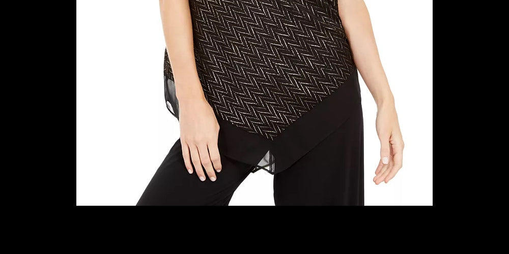 Aprox. 29 de comprimento | Decote redondo | Detalhe metálico em toda a peça; bainha pontiaguda com acabamento em chiffon | Revestimento; forro; acabamento; poliéster