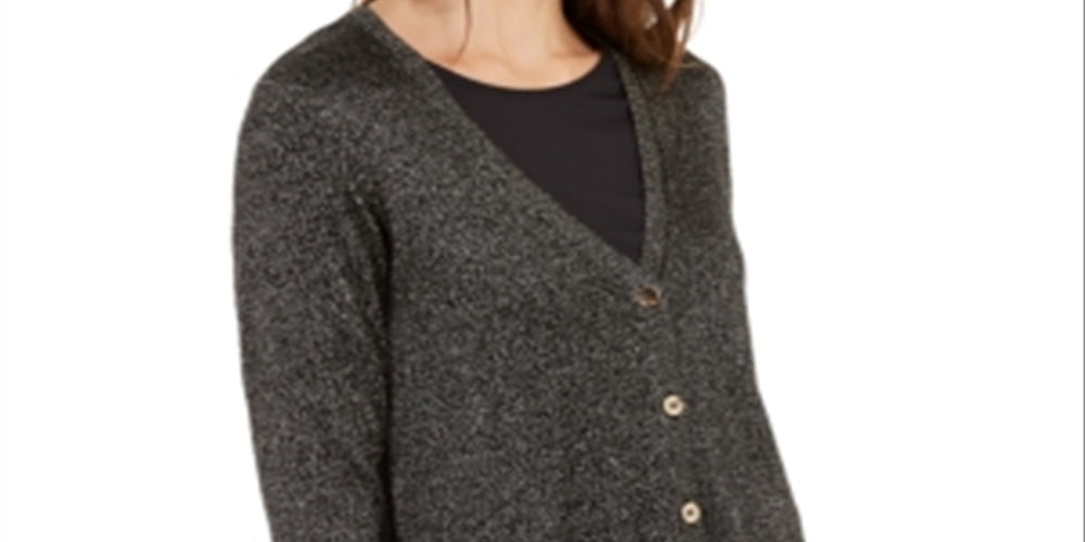 O cardigan clássico ganha uma atualização nada convencional que mistura o visual descontraído de uma camisa mais longa com o toque luxuoso do Lurex metálico neste suéter pequeno da Alfani