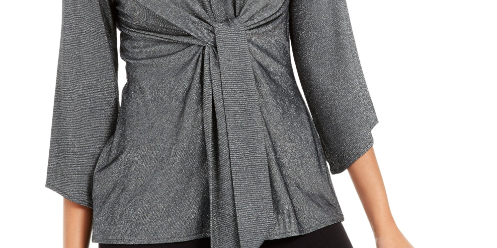 Aproximadamente 25-1/4 de comprimento | Decote redondo | Detalhe metálico em toda a peça; amarração na cintura frontal | Mangas 3/4