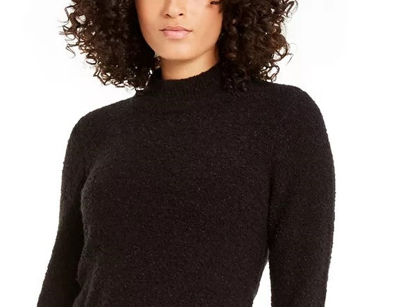 Suéter feminino Alfani com gola alta e bouclé, preto, tamanho pequeno