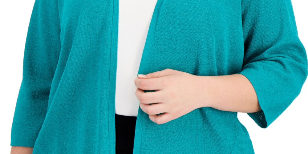 A camada perfeita da Alfani | este cardigan plus size apresenta charmosas mangas 3/4 e uma frente aberta versátil