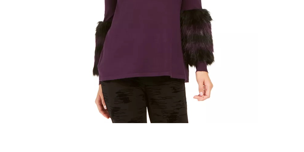 Alfani Suéter feminino pequeno com acabamento em pele sintética, roxo, tamanho PL