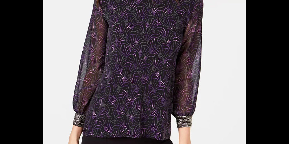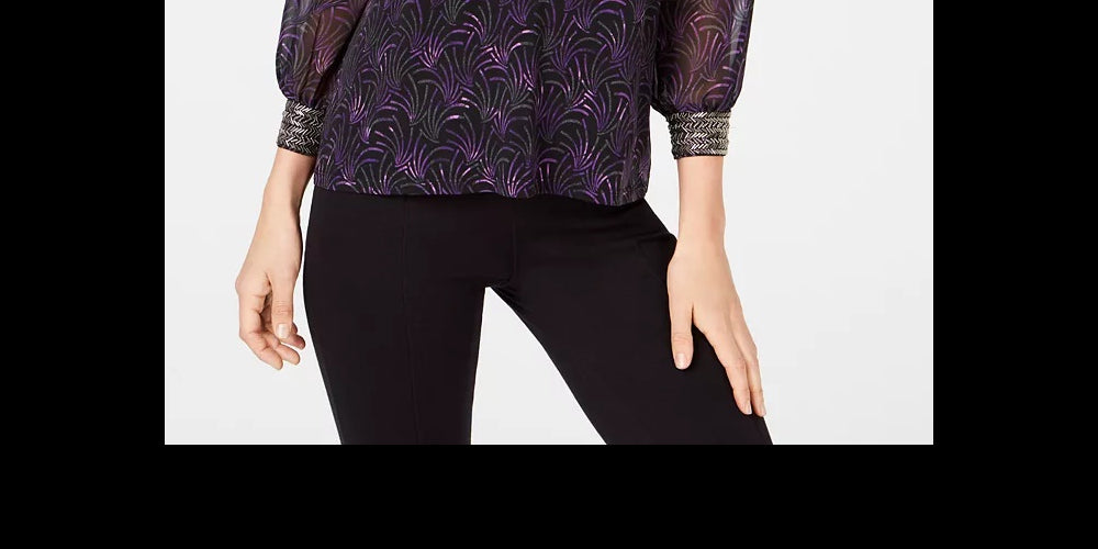 Ajuste no quadril | Projetado para se ajustar e valorizar pessoas de 1,62 m ou menos | Gola alta falsa; botões na gola traseira | Enfeitado no decote e nos punhos | Poliéster/elastano; mangas; poliéster