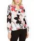 Alfani Top Feminino Petite Estampado com Sobrepeliz e Debrum Branco Tamanho Médio
