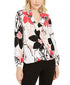 Alfani Top Feminino Petite Estampado com Sobrepeliz e Debrum Branco Tamanho Petite