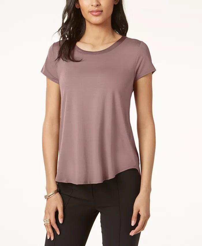 Ajuste relaxado | Projetado para se ajustar e valorizar pessoas de 1,62 m ou menos | Decote redondo | Prega única no centro das costas | Rayon/elastano; sem acabamento