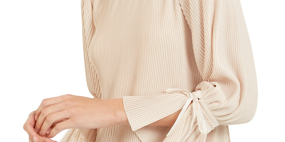 Projetado para se ajustar e valorizar pessoas de 1,62 m ou menos | Decote falso; fecho tipo fechadura na parte de trás do pescoço | Mangas 3/4 estilo sino | Enfeitado no pescoço; laço de fita nas mangas | Poliéster; forro: nylon | Lavar à mão