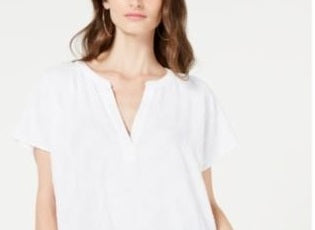 Blusa texturizada com decote em V pequena Alfani feminina - branca, tamanho PXL