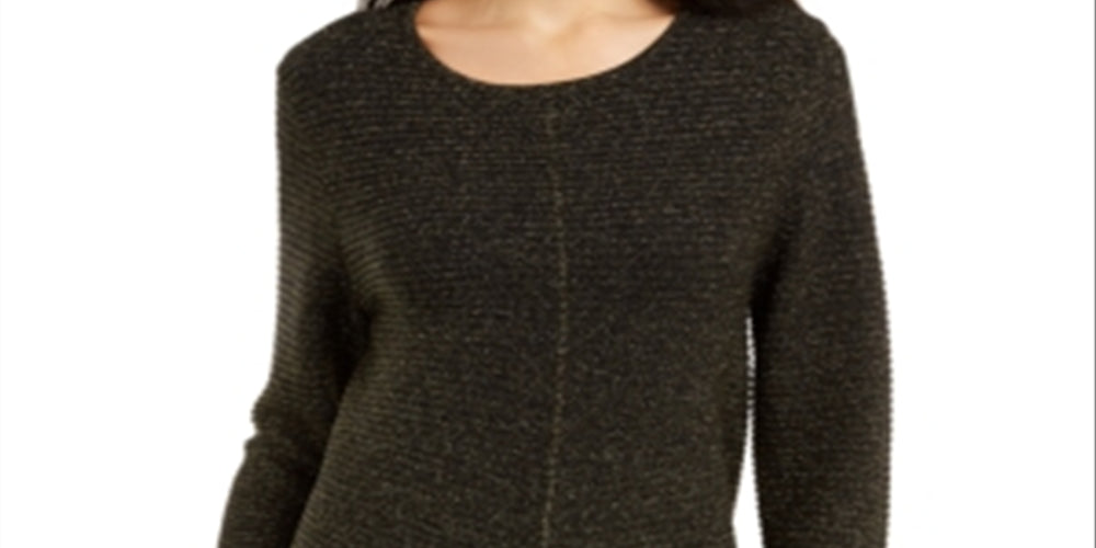 Blusa feminina Alfani com listras e punhos e decote em joia, preta, tamanho pequeno grande