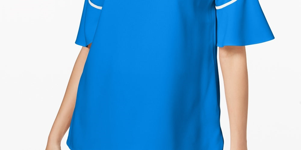 Decote redondo | Decote com debrum | Detalhe de vivo no decote; pala e mangas | Mangas curtas e esvoaçantes