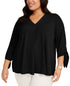 Blusa feminina Alfani com pregas nas costas e manga amarrada - preta, tamanho 1X