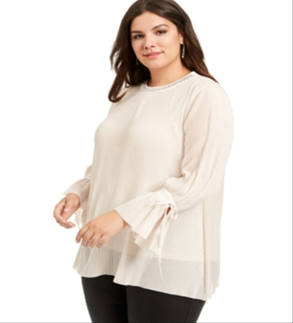 Tecido microplissado | Enfeites de strass | Punhos dramaticamente alargados |
