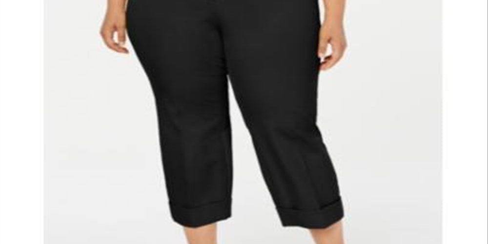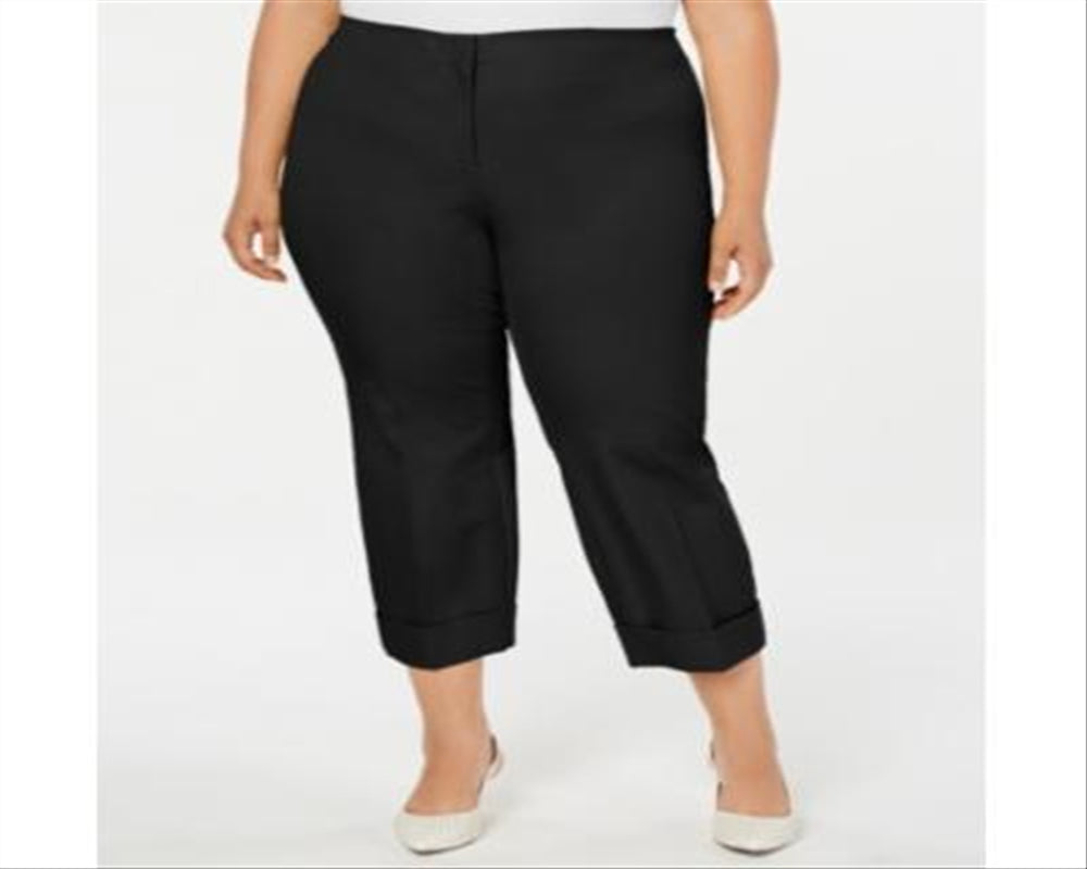 Calça Alfani Plus Comfort com punho no tornozelo, feminina, preta, tamanho 28W