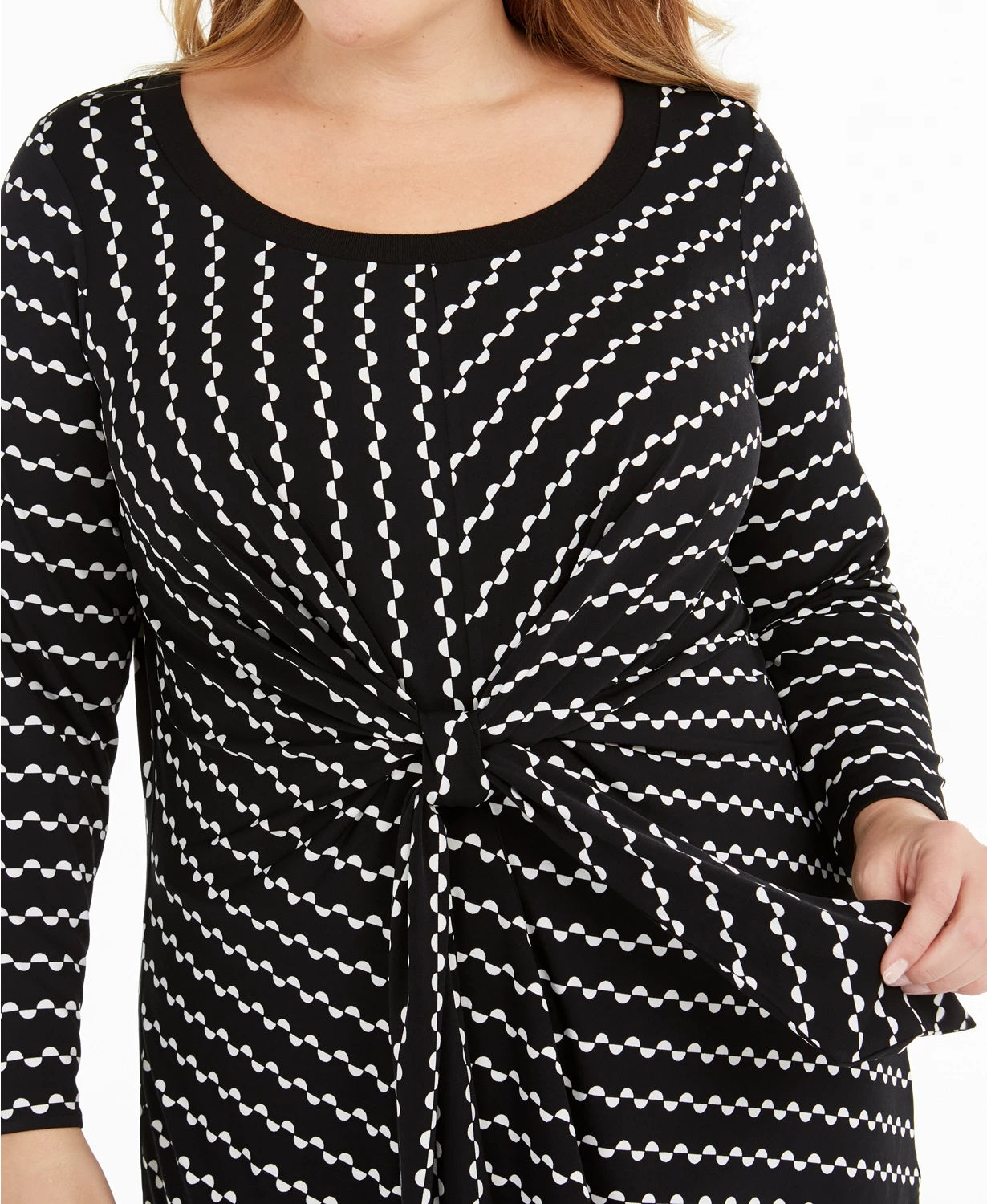 Top feminino Alfani Plus Size estampado com amarração na cintura, preto, tamanho 1X