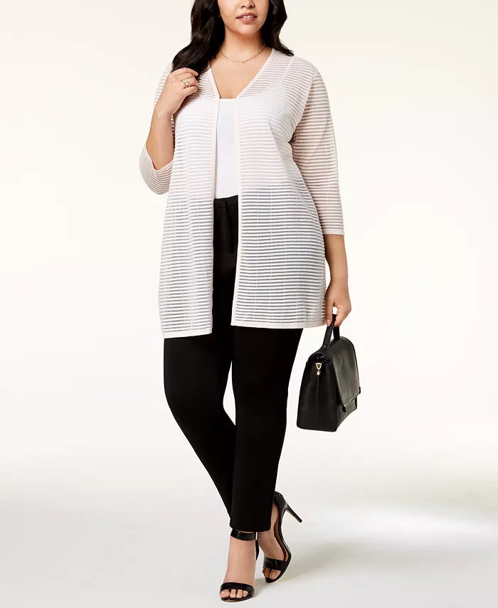 Cardigan Alfani Feminino Plus Illusion-Stripe Azul Tamanho 4X