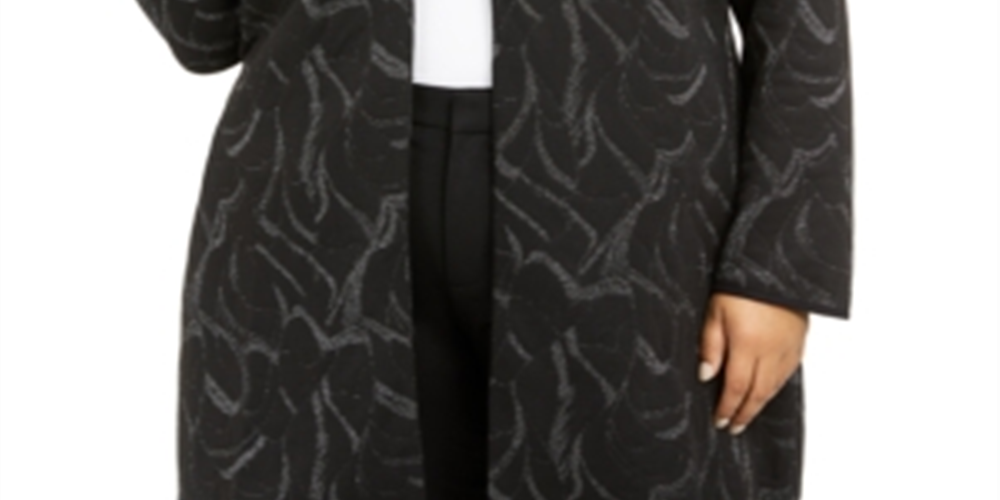 Suéter feminino Alfani Plus Jacquard com gola metálica, preto, tamanho 0X