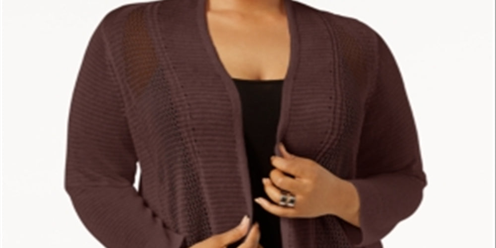 Cardigan Alfani Feminino Plus com Pontos Mistos e Frente Aberta, Marrom, Tamanho 4X