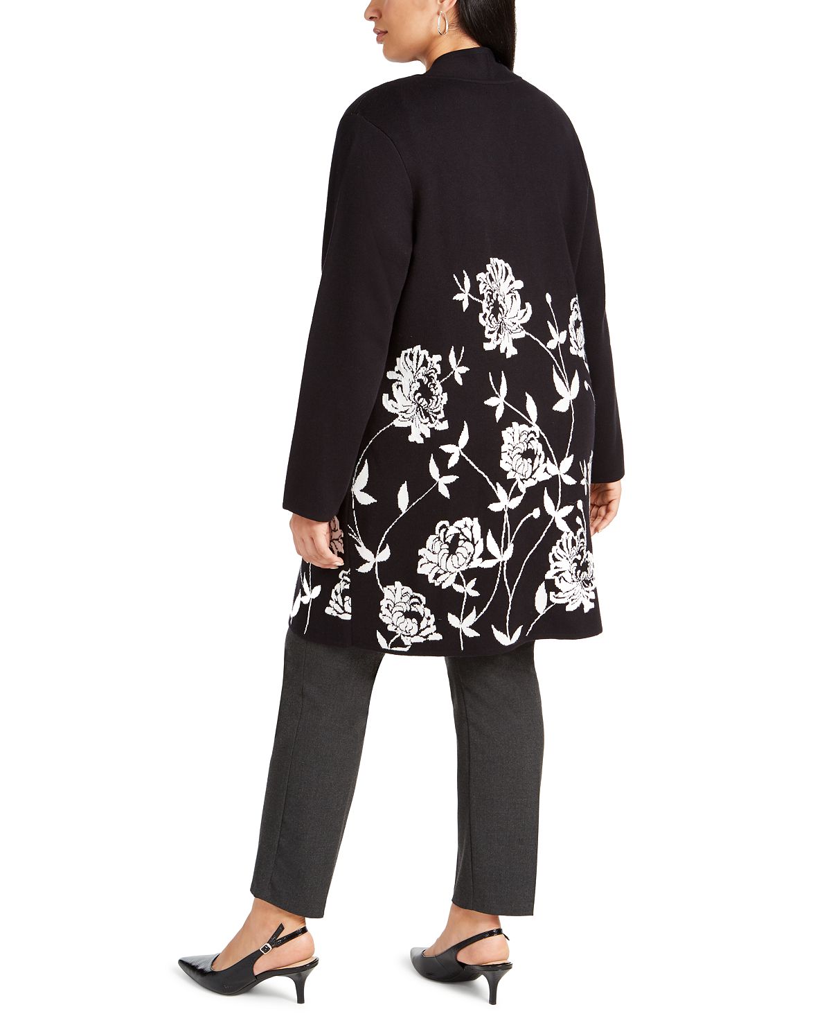 Alfani destaca este cardigan plus size aberto na frente com uma estampa floral retorcida que desabrocha na bainha baixa. | Decote e frente abertos; sem fecho | | Algodão/rayon/elastano | Lavável à máquina | Importado