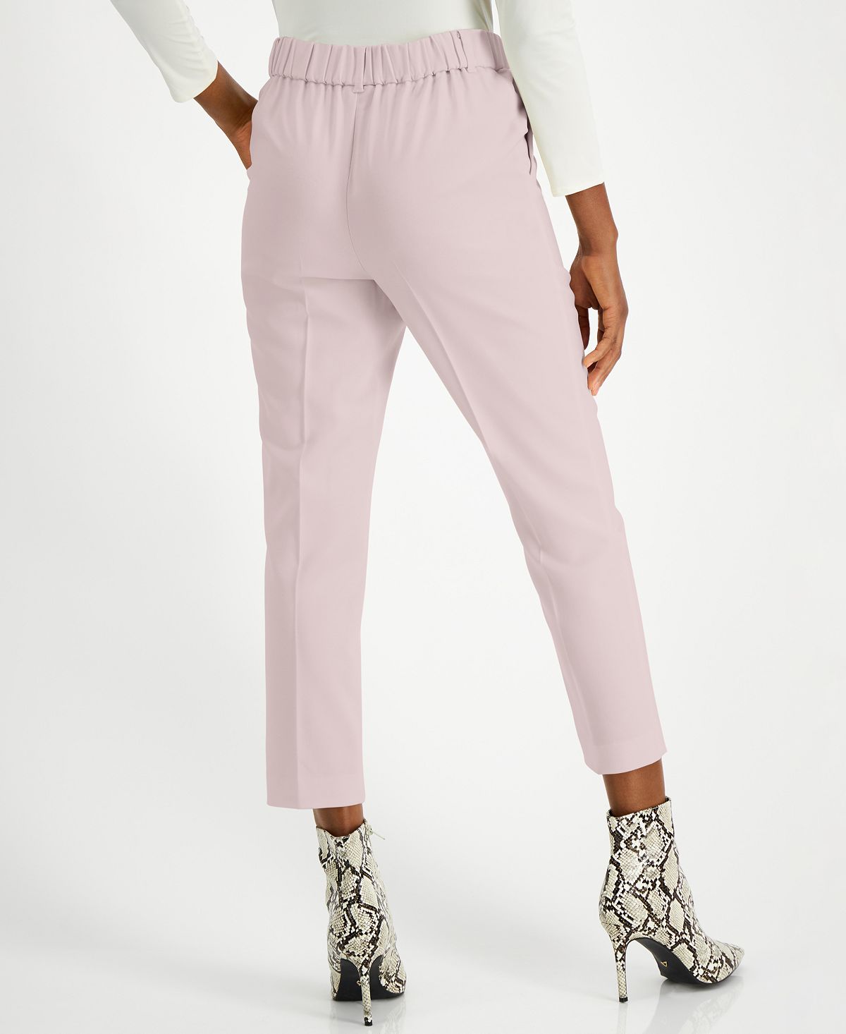 | Comprimento interno aprox.; 27| Altura aproximada; 12-1/2| Estilo pull-on | Cós elástico com passantes para cinto| Bolsos com fenda nos quadris|
