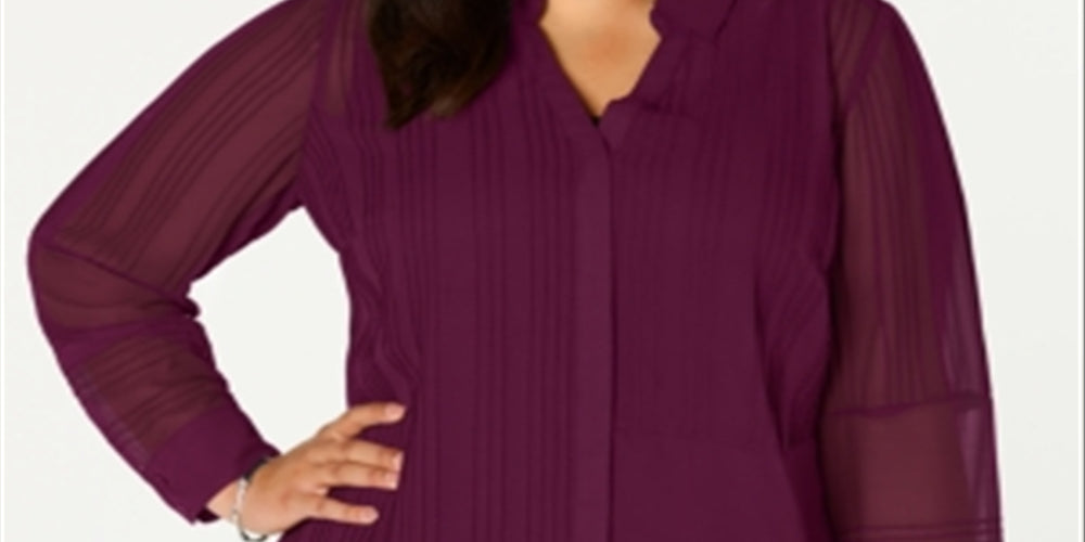 Gola pontuda; decote aberto | Fecho de botão na frente | Tecido texturizado semitransparente