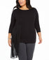 Blusa feminina Alfani Plus Size com sobreposição assimétrica, preta, tamanho 0X