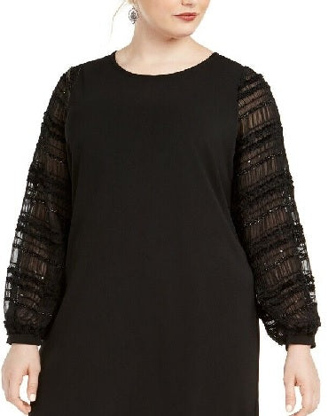 Vestido feminino Alfani Plus Size com mangas enfeitadas e decote profundo, preto, tamanho 2X