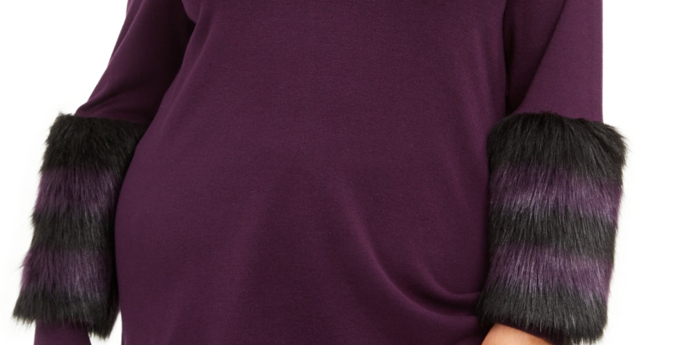 Gola alta falsa | Listrada; punhos de pele sintética nas mangas compridas | Corpo; rayon/nylon; pele sintética; acrílico/modacrílico/poliéster | Lavagem a seco