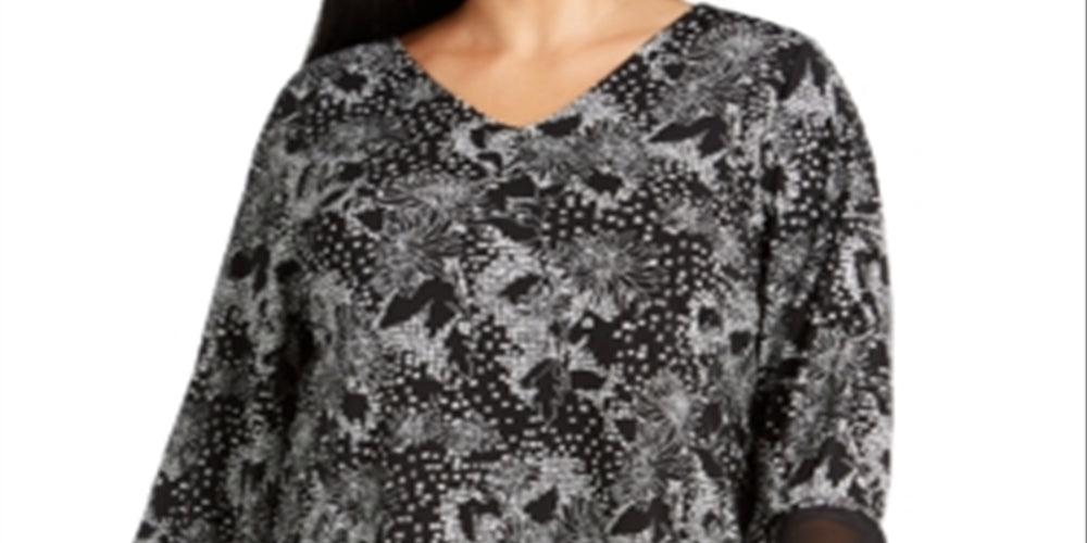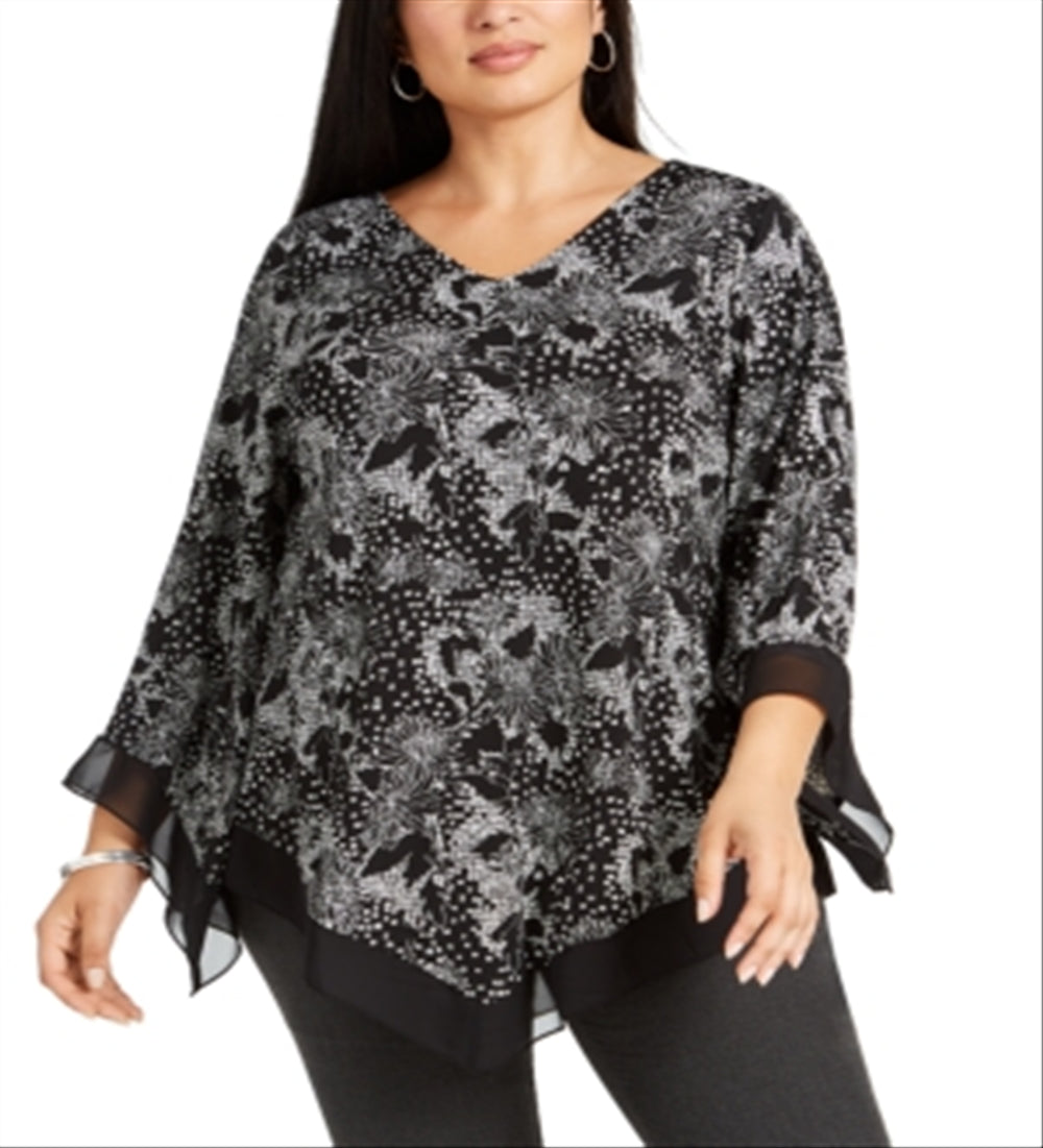 Blusa feminina Alfani Plus com bainha em V, preta, tamanho 0X