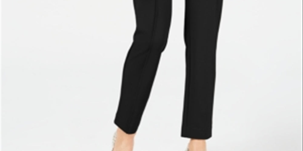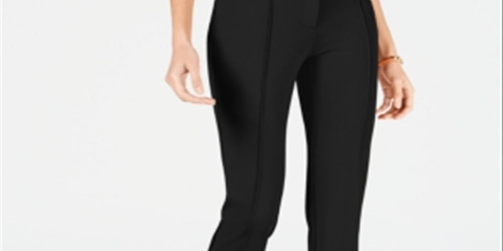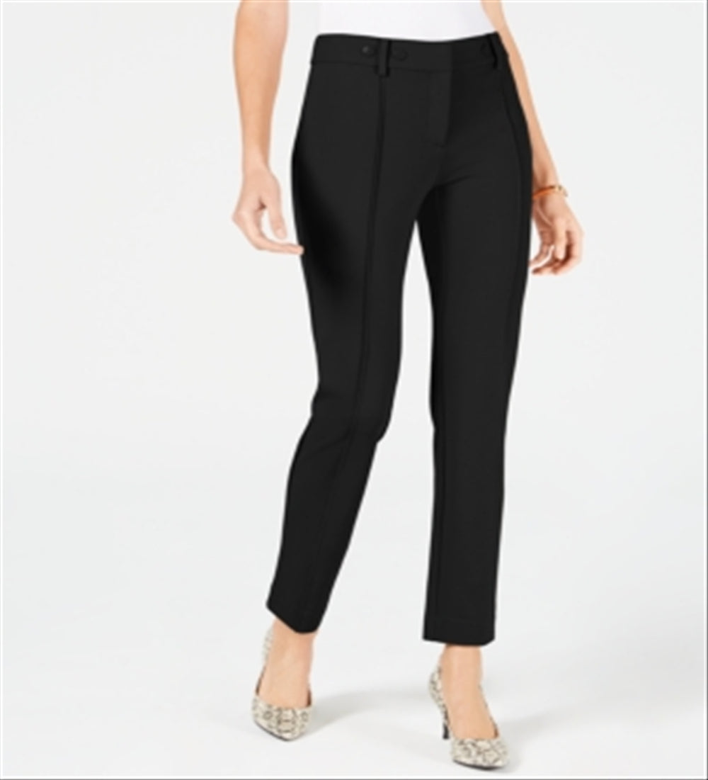 Fecho de zíper e colchete na frente; passantes para cinto | Detalhes de costura nas pernas da frente; bolsos de vassoura atrás |