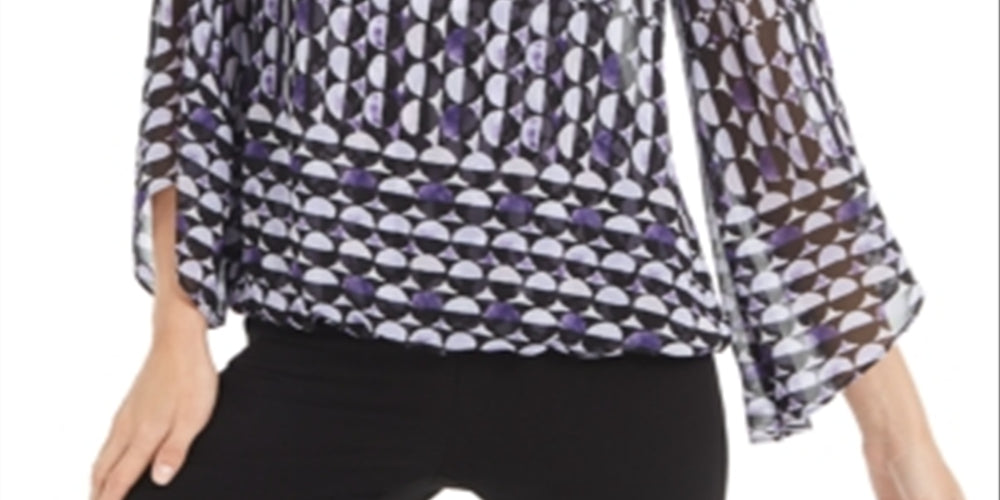 Blusa feminina Alfani com estampa de manga sino e decote em joia, roxa, tamanho XX-G