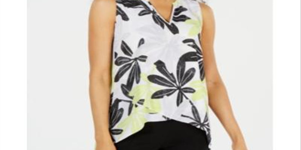 Blusa feminina Alfani com estampa cruzada na frente, folhas brancas/verdes, tamanho pequeno G