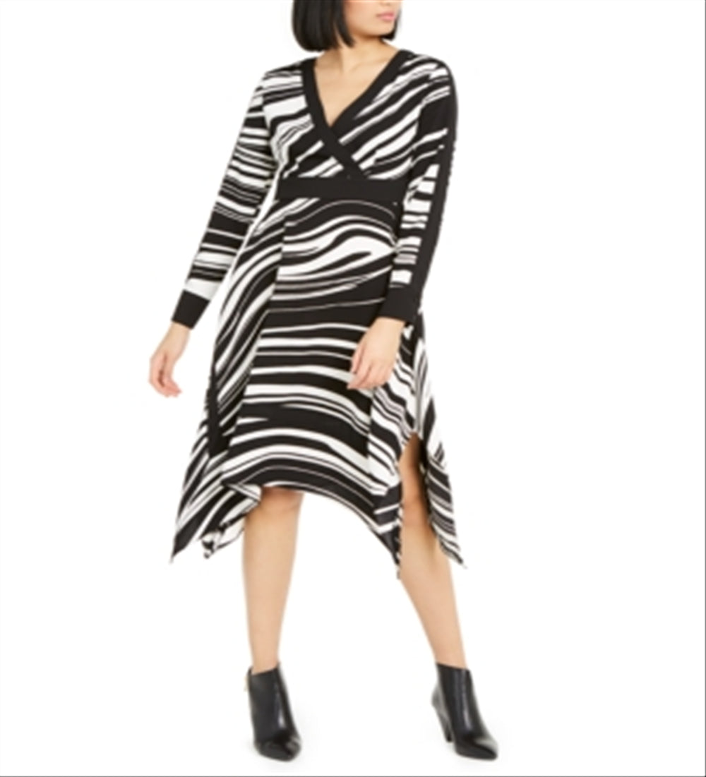 Vestido feminino Alfani com bainha de lenço estampado, preto, tamanho 4