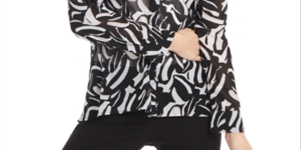 A Alfani coloca a moda em foco com esta blusa pequena | uma escolha semitransparente projetada com uma estampa linda e punhos abotoados