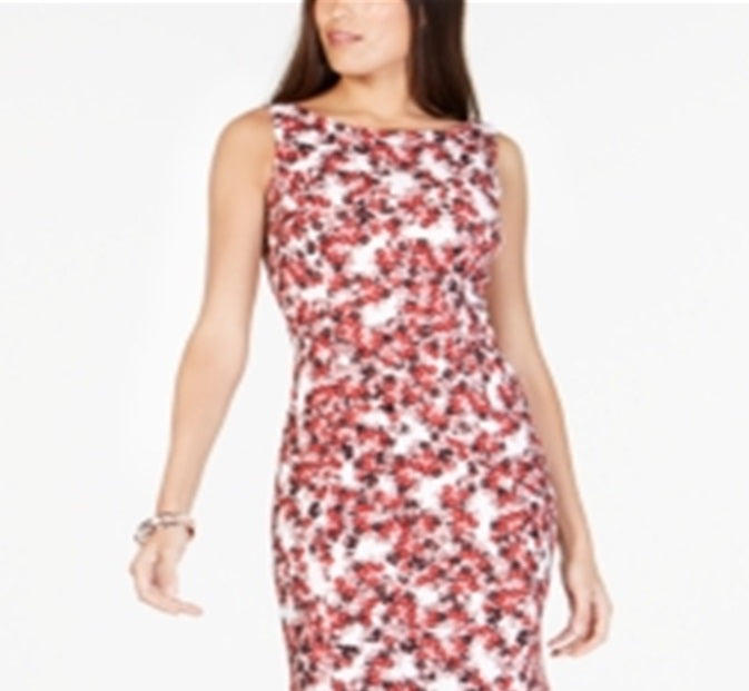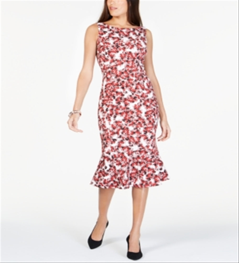 Vestido sereia MIDI com decote em joia estampado Alfani feminino, tamanho 14, vermelho