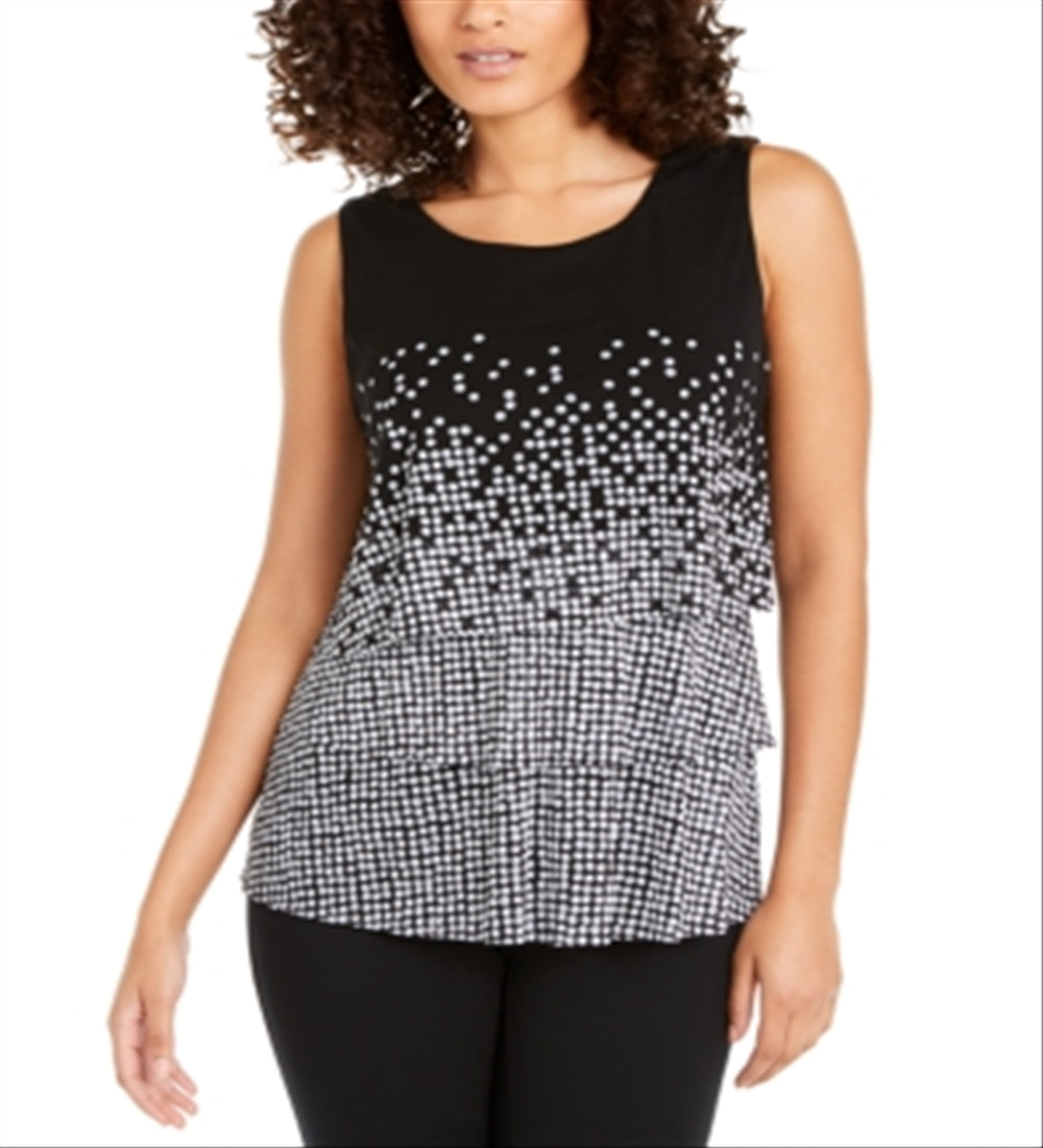 Blusa feminina estampada em camadas Alfani, preta, tamanho 2XL