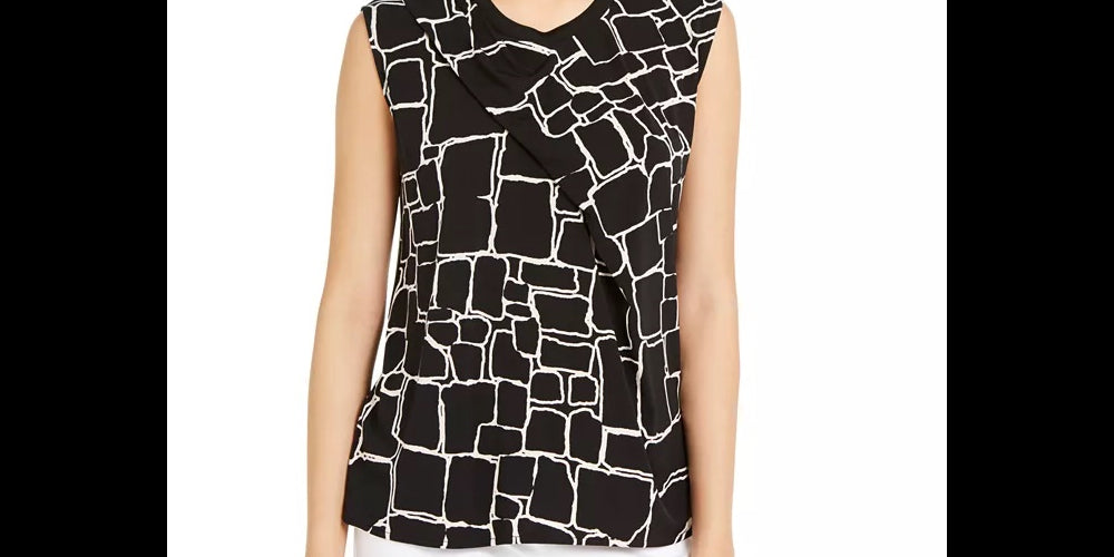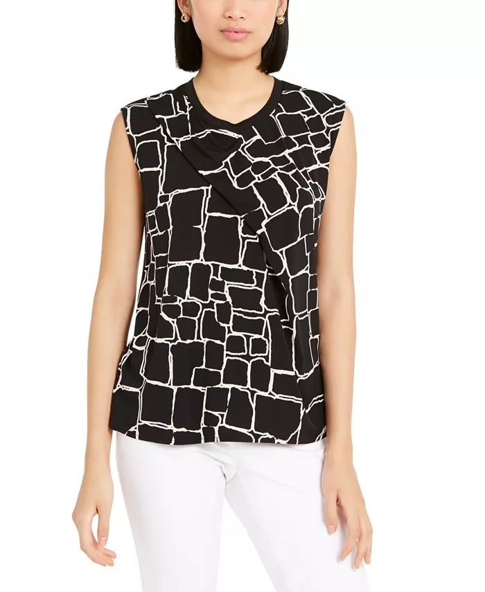 Blusa sem mangas com pregas frontais estampadas Alfani para mulheres, preta, tamanho grande