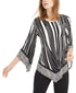 Dê um toque sofisticado ao seu visual com o top pequeno da Alfani, com uma mistura de estampas e bainha pontiaguda. | Comprimento aproximado de 27-3/8 | Projetado para se ajustar e valorizar pessoas de 1,62 m ou menos | Decote redondo | Estampa contrastante nos punhos e bainha pontiaguda | Mangas 3/4