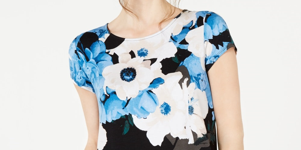 Ajuste no quadril | Projetado para se ajustar e valorizar pessoas de 1,62 m ou menos | Decote redondo | Bainha arredondada | Rayon/elastano
