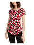 Camiseta feminina Alfani estampada com bainha redonda, vermelha, tamanho pequeno médio