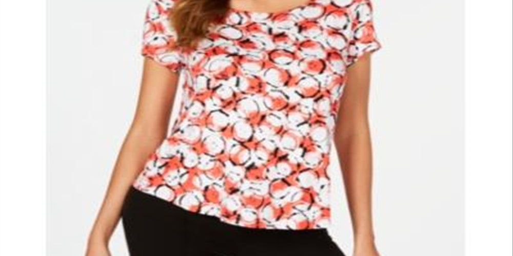Camiseta feminina Alfani estampada com bainha redonda, vermelha, tamanho pequeno P/M