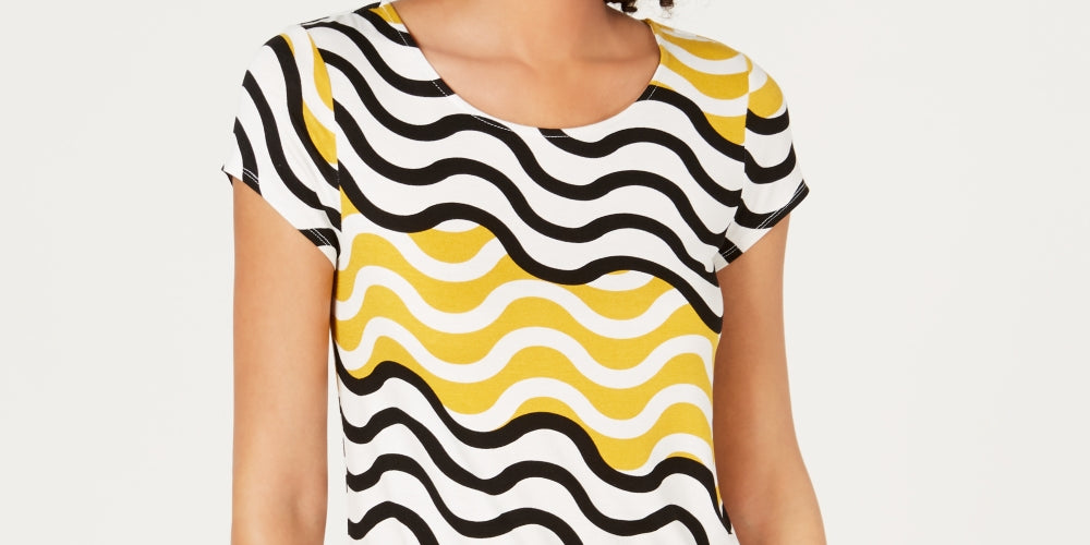 Camiseta feminina Alfani estampada com bainha redonda, tamanho pequeno, amarela