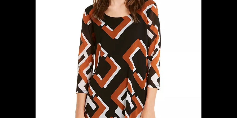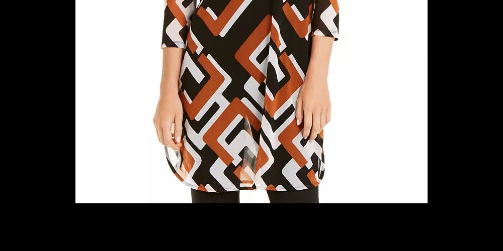 Aprox. 35-3/8 de comprimento | Decote redondo | Fendas profundas nas costuras laterais arredondadas | Bainha tulipa | Mangas 3/4 | Revestimento e forro; nylon