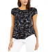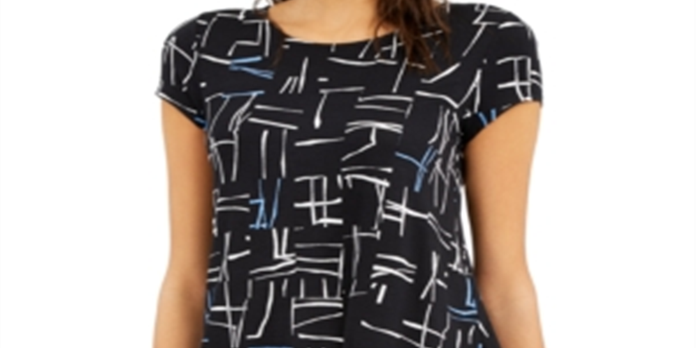 Ask a question about Blusa de malha feminina Alfani estampada manga curta multicolorida tamanho pequeno preta