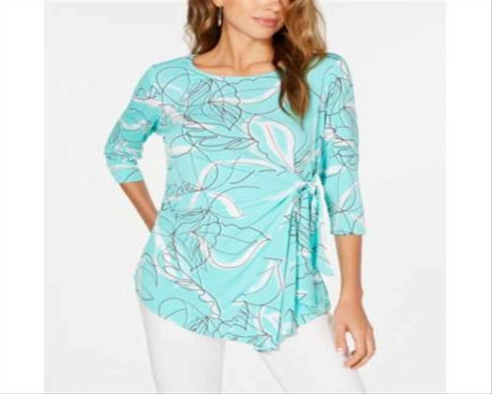 O estilo sofisticado encontra uma silhueta atraente neste top elástico estampado pequeno da Alfani