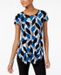 Ask a question about Camiseta feminina estampada Alfani, azul-petróleo, texto, folhas, tamanho pequeno