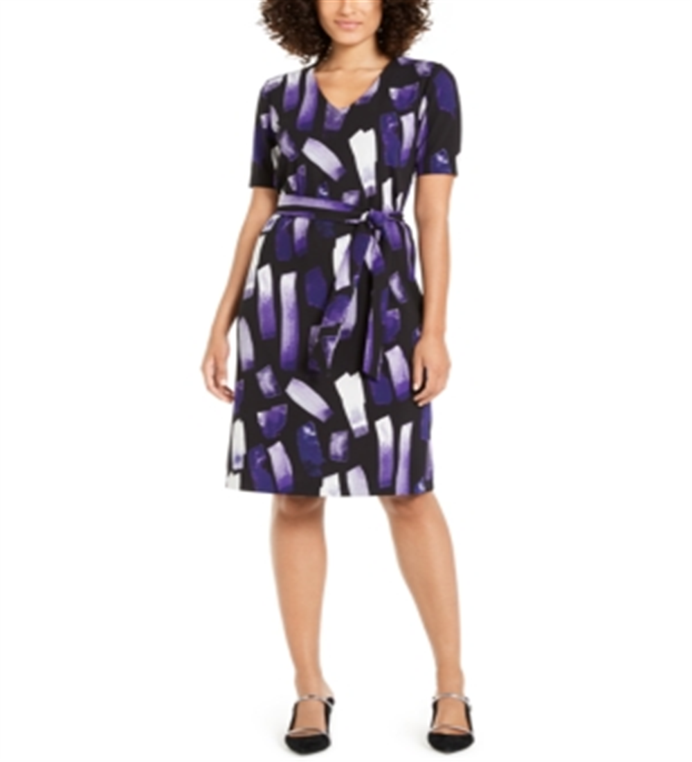 Vestido feminino Alfani estampado com amarração na cintura, roxo, tamanho pequeno G