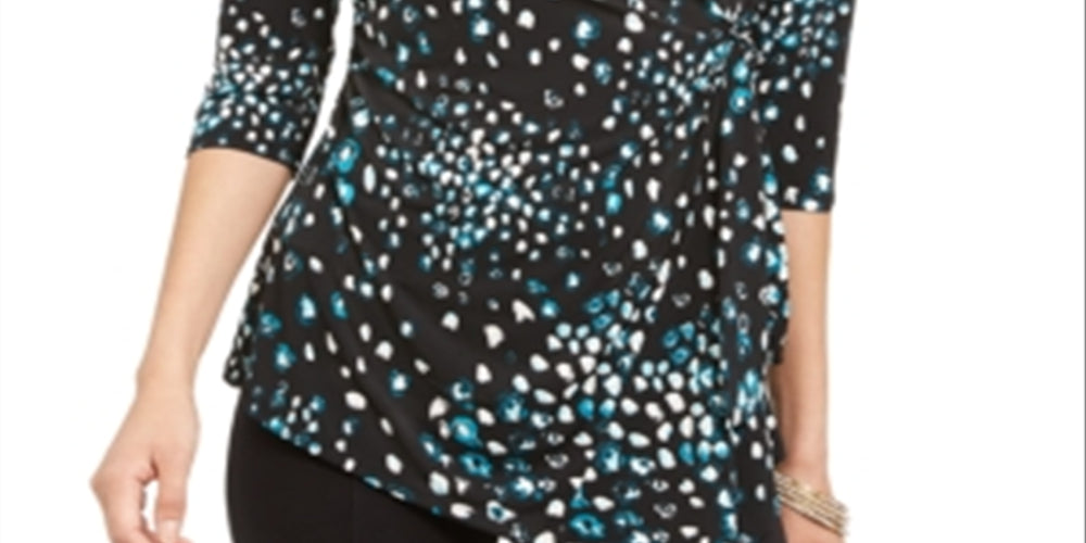 Blusa estampada feminina Alfani, azul marinho, tamanho pequeno GG