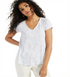 Camiseta feminina estampada com decote em V da Alfani, branca, tamanho XX-G