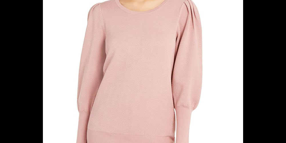 Mangas longas e bufantes com punhos ajustados modernizam este suéter Alfani | um top estiloso com acabamento em malha chevron chique. | Comprimento aproximado: 63 cm | Decote redondo | Mangas longas e bufantes com punhos ajustados e alongados |