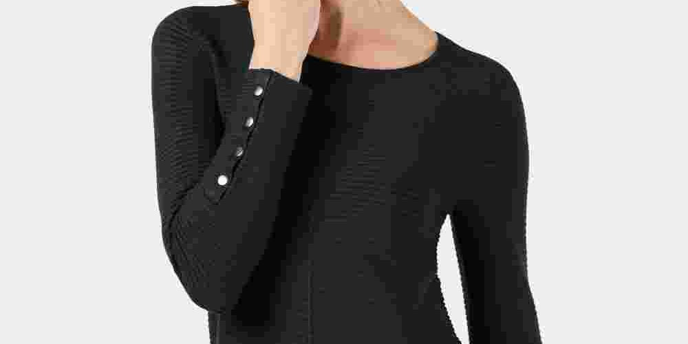 Suéter feminino Alfani com detalhe canelado e botões de pressão, preto, tamanho X-S